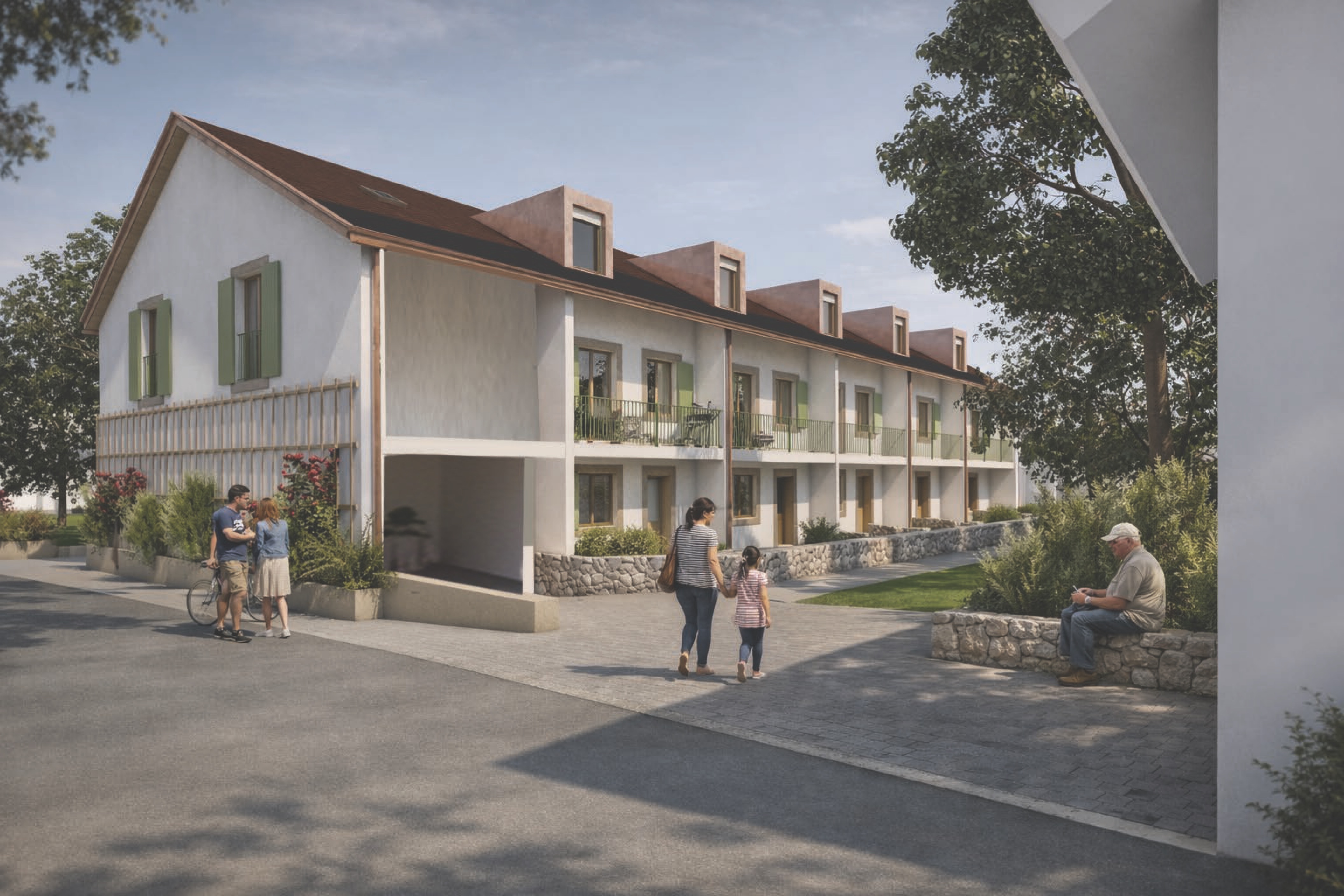 Situeé en bordure nord du village de Bernex, en zone 4B proteégeée, le projet s’inscrit dans une logique de densification douce en proposant une réinterprétation du type de la maison villageoise mitoyenne. Il s’appuie sur une observation attentive du tissu bâti existant et de sa constitution historique pour s’intégrer harmonieusement au contexte et mettre en valeur ses qualités paysagères. Le volume projeteé compose avec les bâtiments existants un ensemble cohérent s’inspirant du type de la cour ouverte, courant dans les fermes traditionnelles.